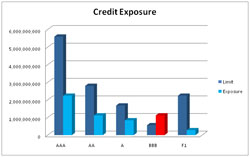 Credit exposure is measured as per company credit policy. The limit structure can be very generic from a credit quality as per official credit rating by accredited credit rating agencies or internal credit limits per individual counterparties. A combination of the above can also be incorporated in the design of the credit risk module. Exception reports and unutilized facilities can be viewed on a real-time basis. Credit risk can be viewed as a combination of asset and liabilities with the inclusion of GBF’s in a tailor made fashion.